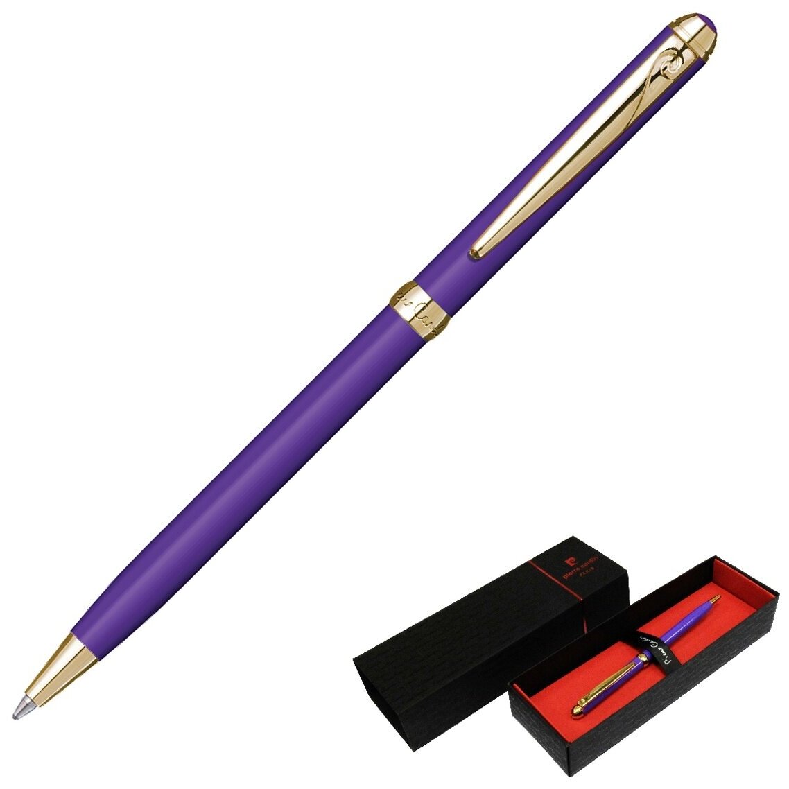 РучкашариковаяPIERRE CARDINSLIM,корпуслатуньлакированная,отделкастальипозолота,фиолетовая