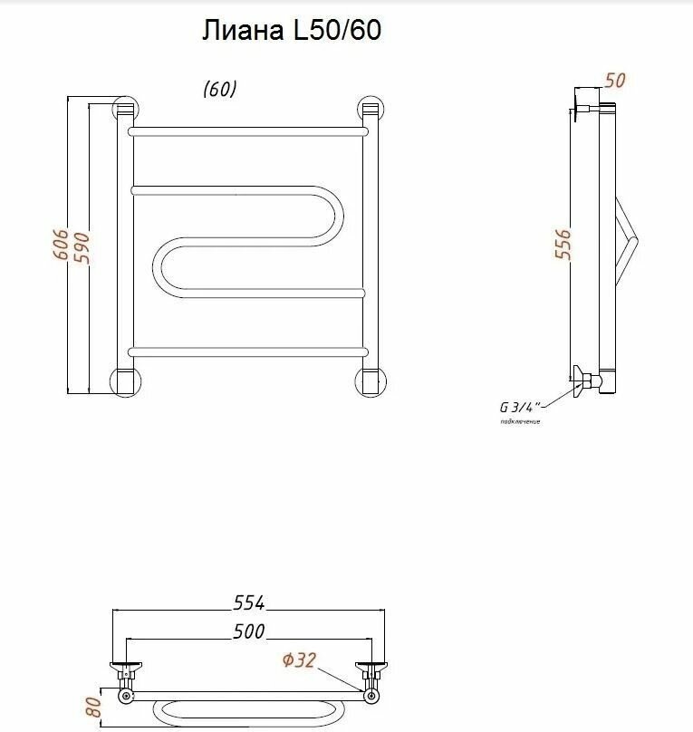 Лиана полотенцесушитель водяной 500х600 мм, лесенка, Termosmart информация: