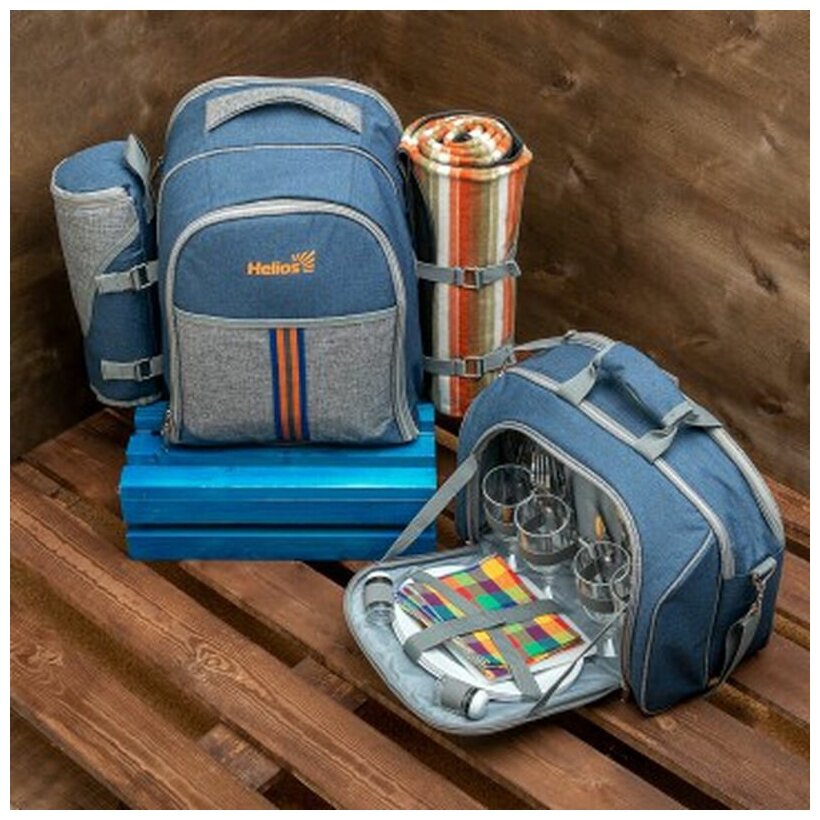 Набор для пикника HELIOS на 4 персоны синий/серый (HS-425S-(4)BG) информация: