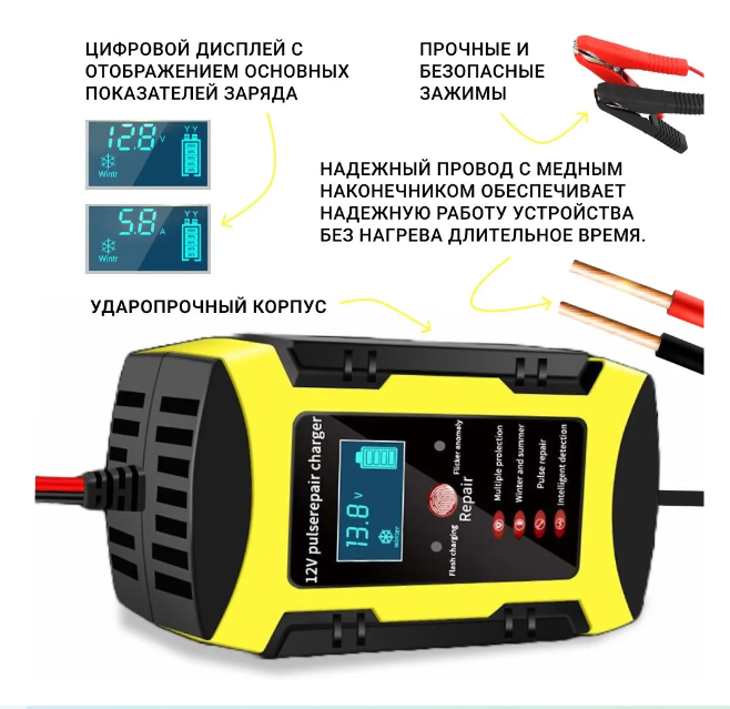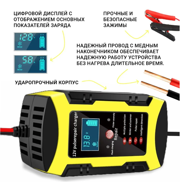 Зарядное устройство для автомобильного аккумулятора 12В 6А, автоматическое информация: