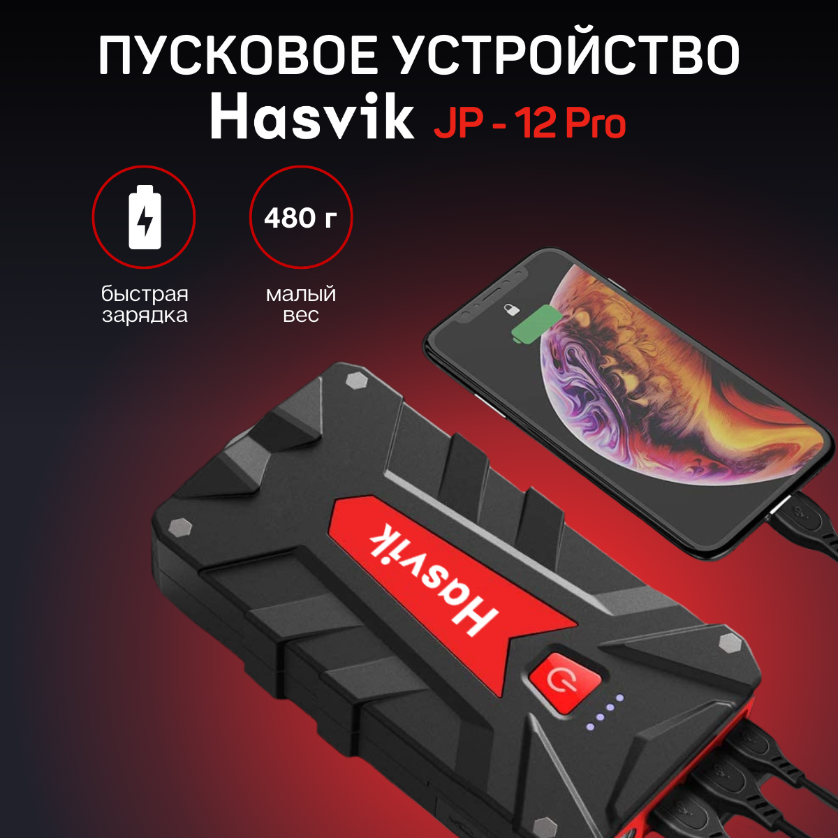 Пусковое устройство Hasvik JP-12Pro, Емкость 16000 мАч, для запуска двигателей до 4.5 л информация: