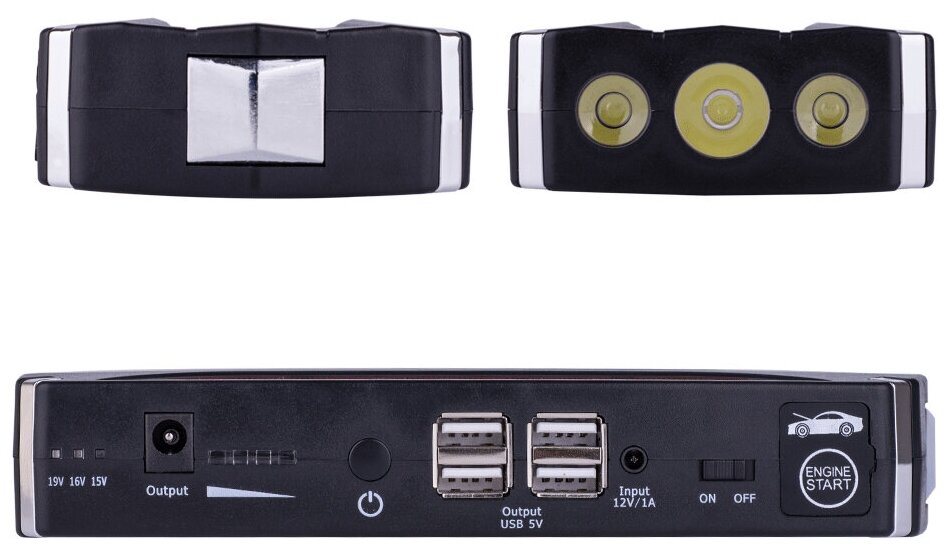 Пусковое устройство для авто, LED фонарь, черный матовый, 800 А, 18 см