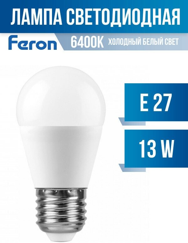10 цен на Лампа светодиодная 13W E27 6400K LB-950 G-45 шар (Feron)