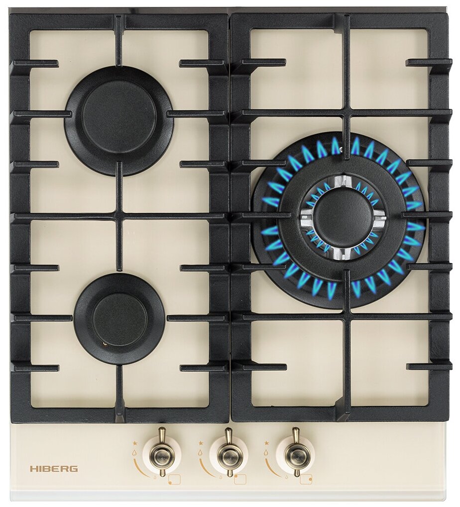 Газовая варочная поверхность HIBERG VM 4534 RY, 3 конфорки, электророзжиг, газ-контроль, бежевый ретро