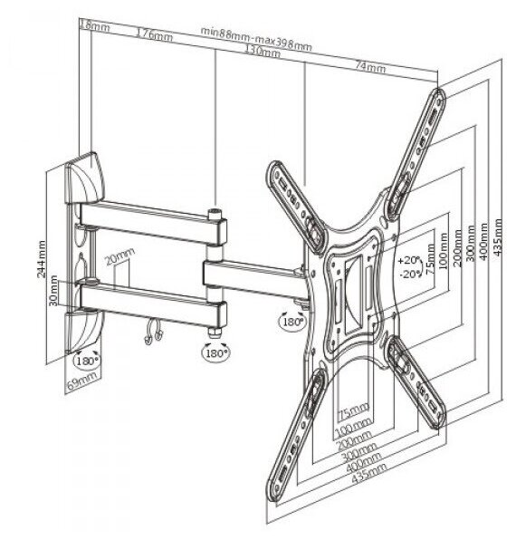 | Стандарт Vesa | 100x100 мм / 300x100 мм / 300x200 мм / 300x300 мм / 400x100 мм / 400x200 мм / 400x300 мм / 400x400 мм / 75x75 мм |