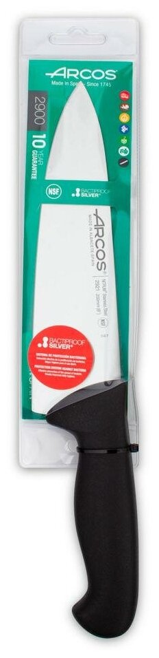 Поварской нож Шеф ARCOS 2900 20 см 292125 Испания, нержавеющая сталь, черный