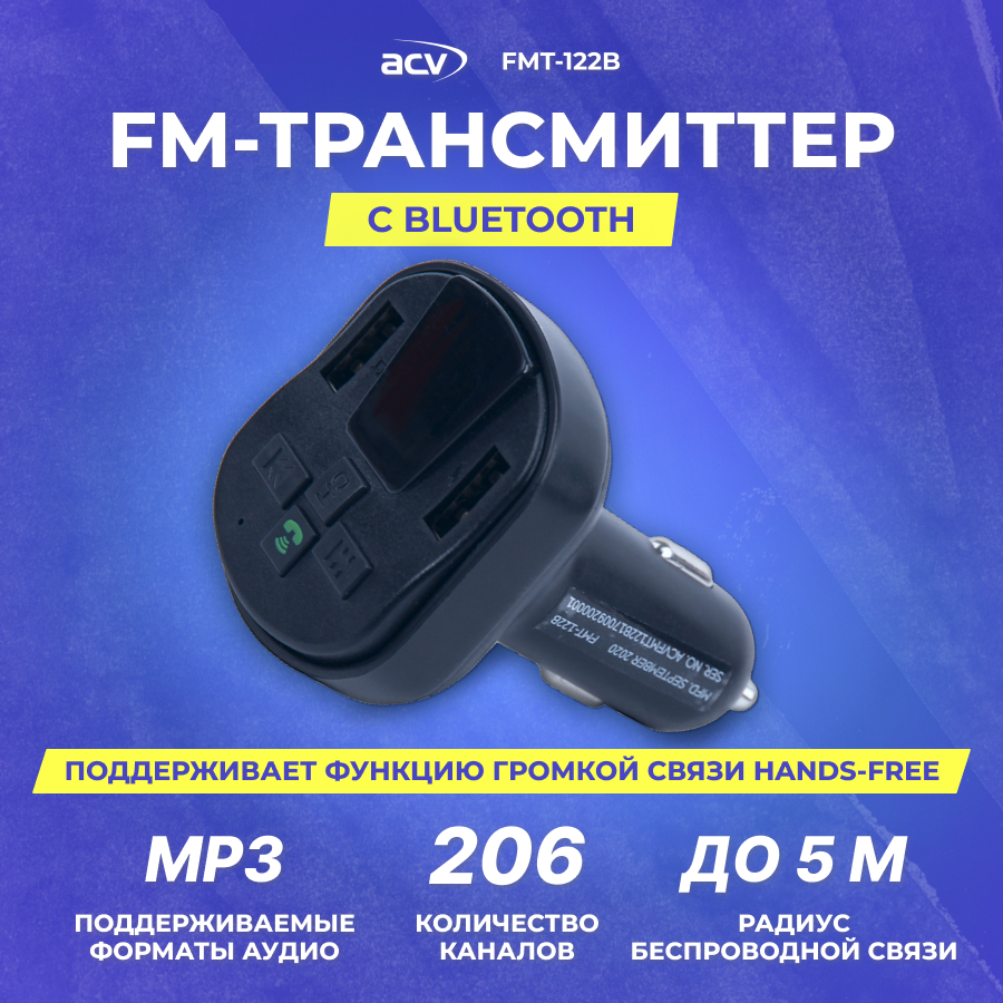 FM модулятор ACV FMT-122B Ж-К диспл/USB/microSD/BT/AUX информация: