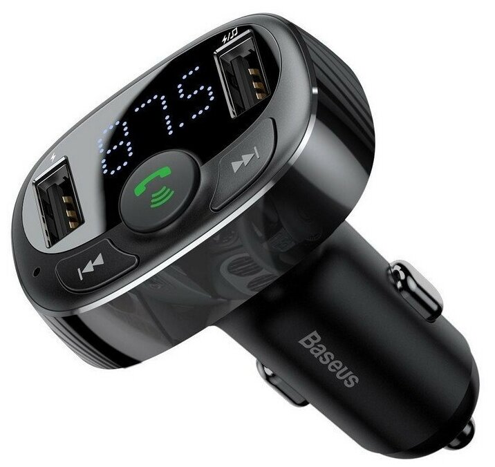 FM-трансмиттер с зарядкой, Baseus Wireless MP3 Car Charger T Typed S-16, Bluetooth 5.0, Черный