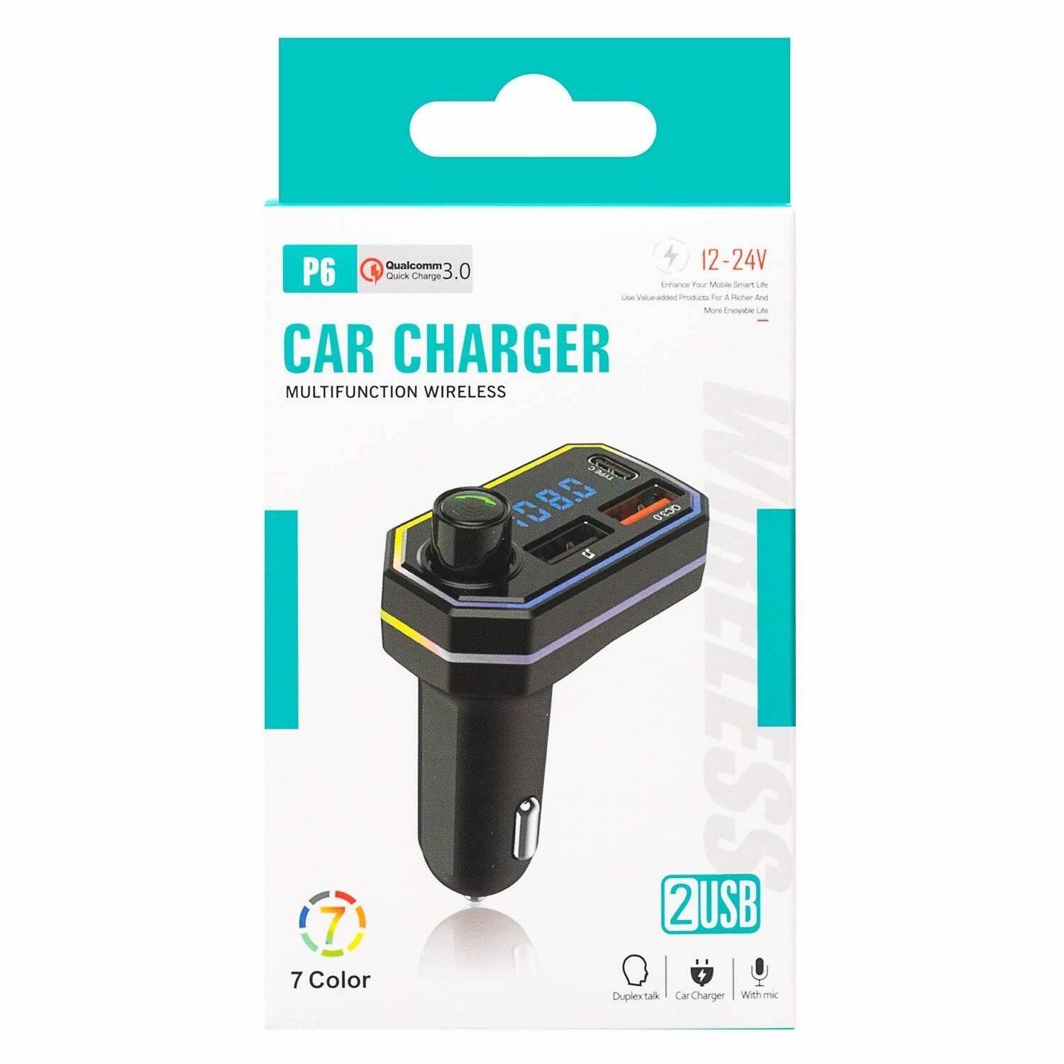 Автомобильный FM-трансмиттер P6, цвет черный, 1 шт. информация: