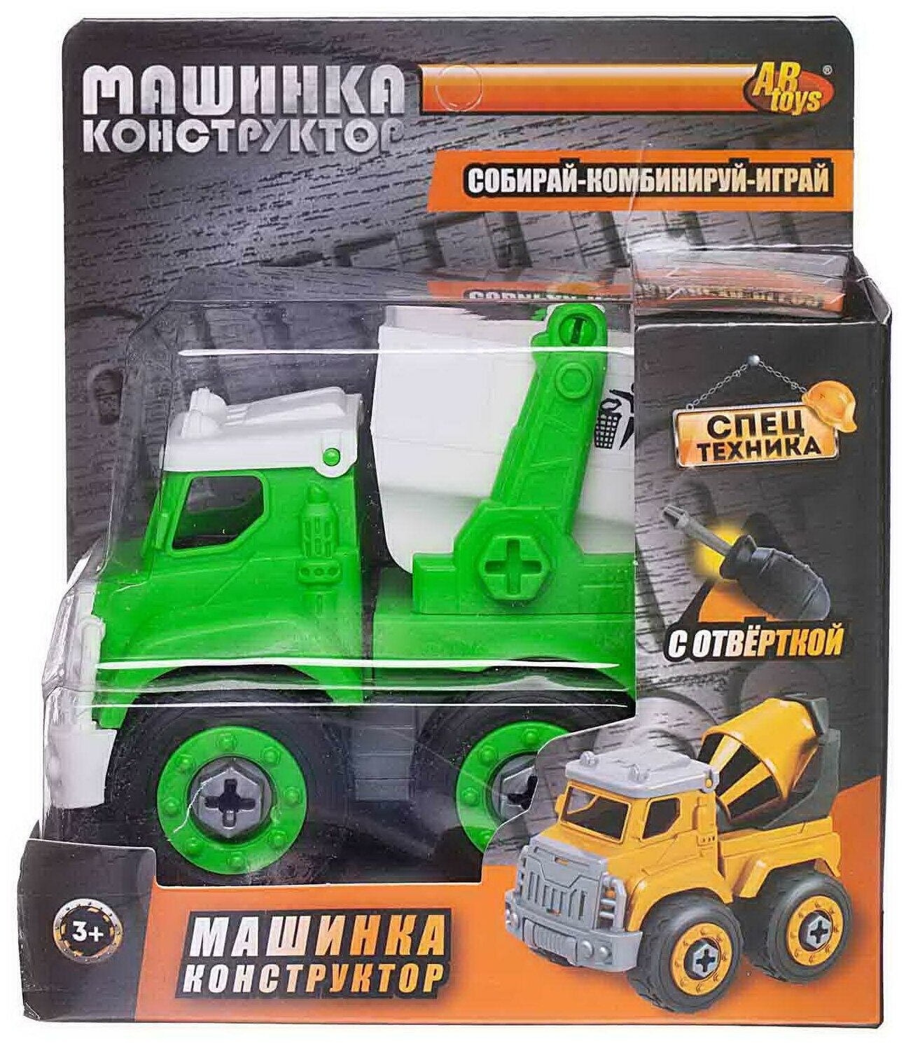 Отзывы на Машинка-конструктор Abtoys Cпецтехника "Городские службы" Мусоровоз с контейнером с отверткой C-00435