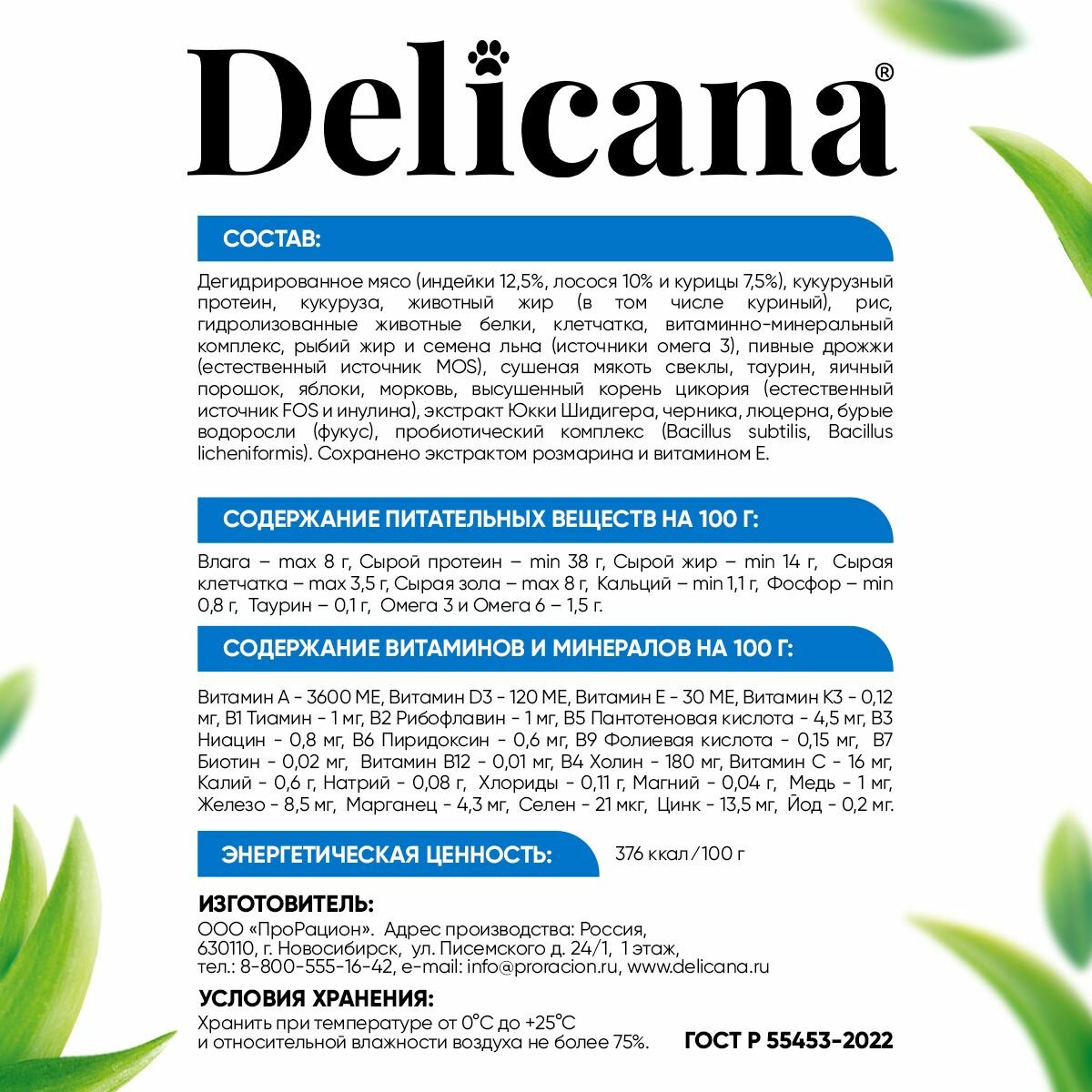 DELICANA Корм сухой для Кошек Лосось с витаминами, минералами и микроэлементами 400 гр