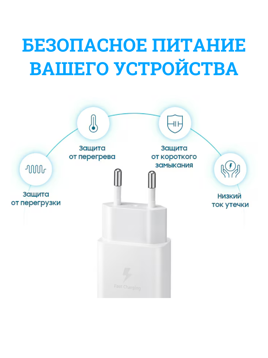Адаптер для Samsung 25W USB-C + Кабель Type-C (3A), быстрая зарядка