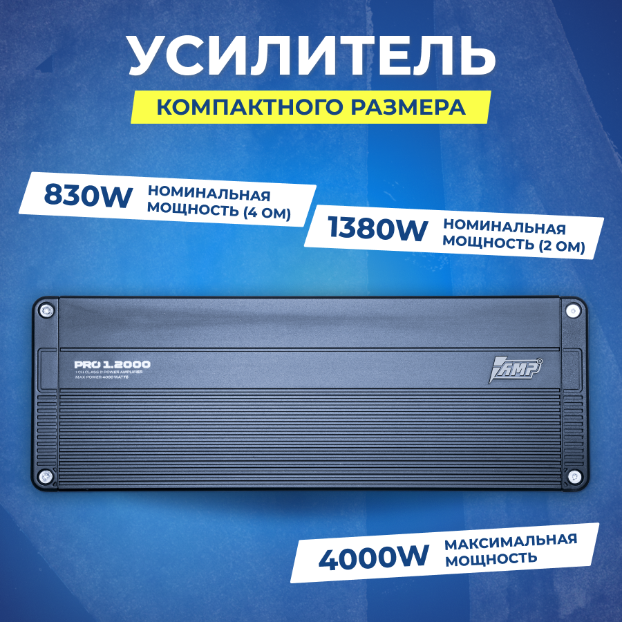Автомобильный усилитель 1 канал AMP PRO 1.2000 информация: