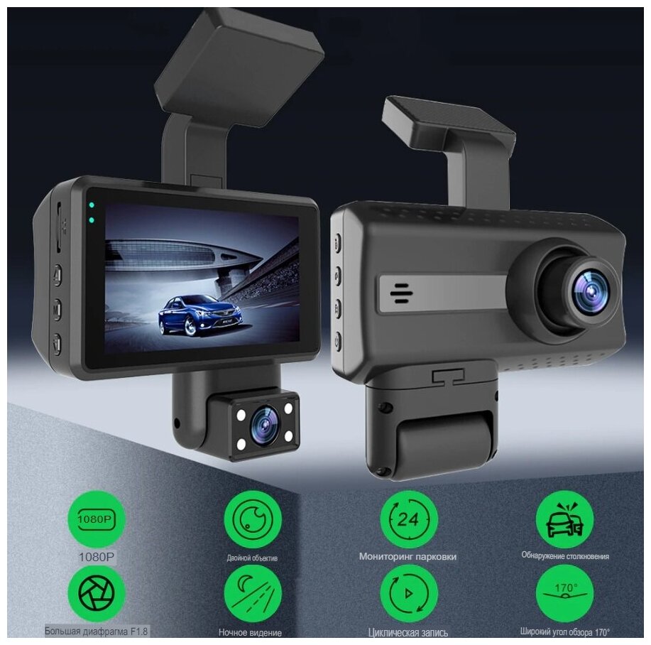 Видеорегистратор с двумя камерами для автомобиля ( салон + капот ) 1080P/G-Sensor /4" HDisplay /(2-х канальная запись)170градус. информация: