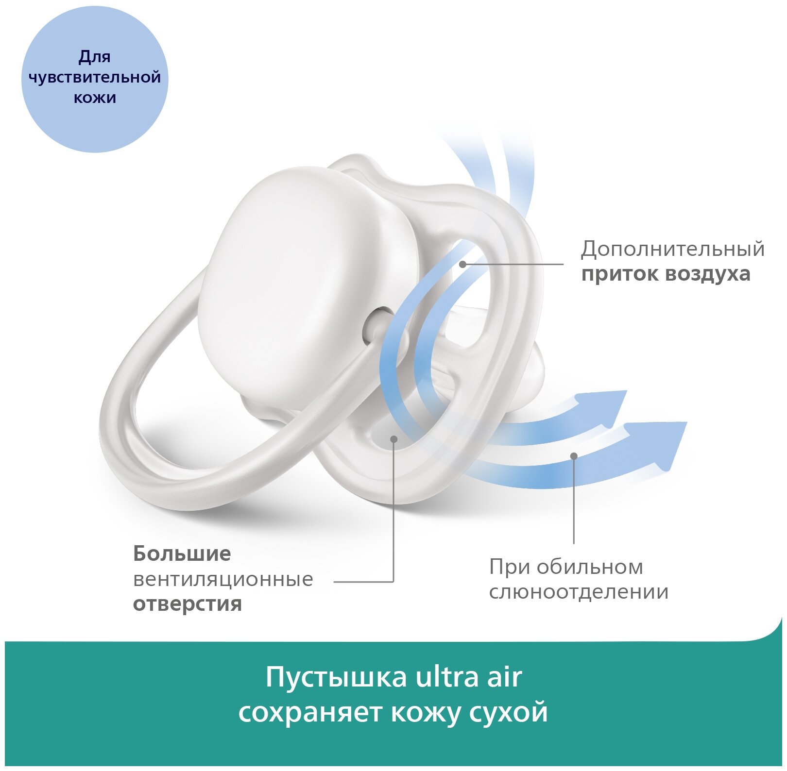 Соска-пустышка силиконовая Philips Avent ultra air SCF080/07 с футляром для хранения и стерилизации, 6-18 мес, 2 шт 1 450 ₽