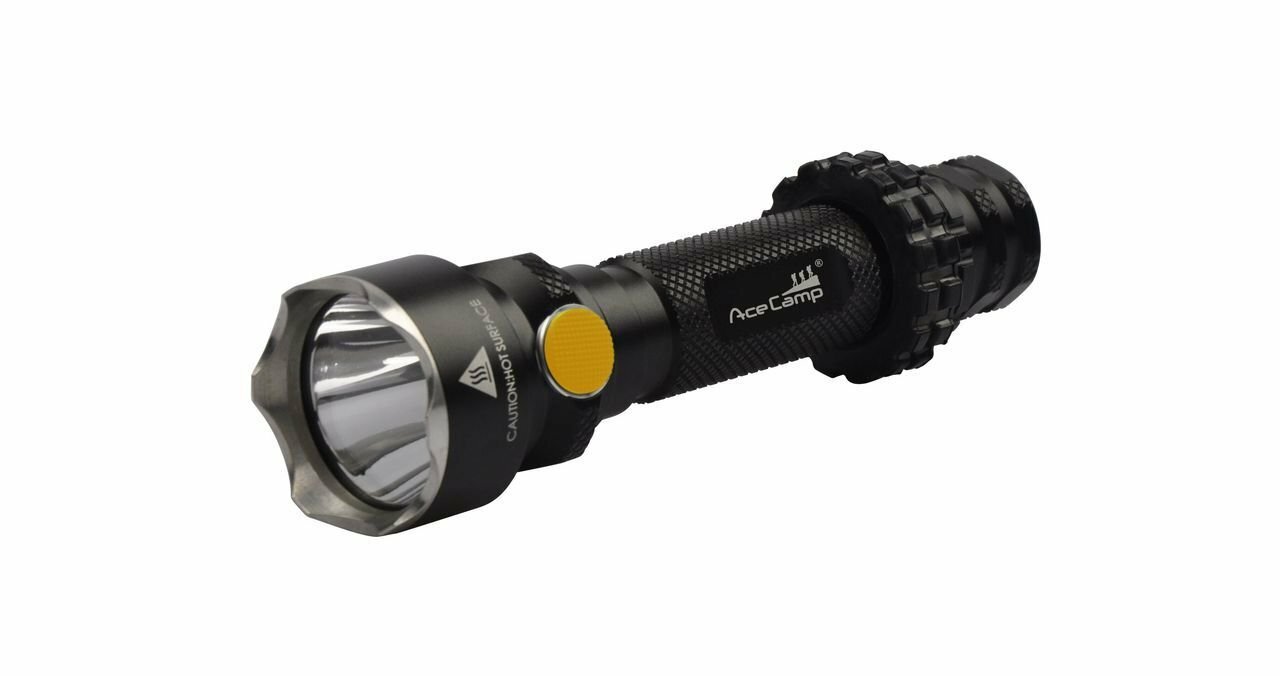 Фонарь AceCamp Aluminum Power Bank Flash 600 люмен со встроенным внешним аккумулятором, тактическим оголовьем в корпусе из авиационног Чёрный, 1026