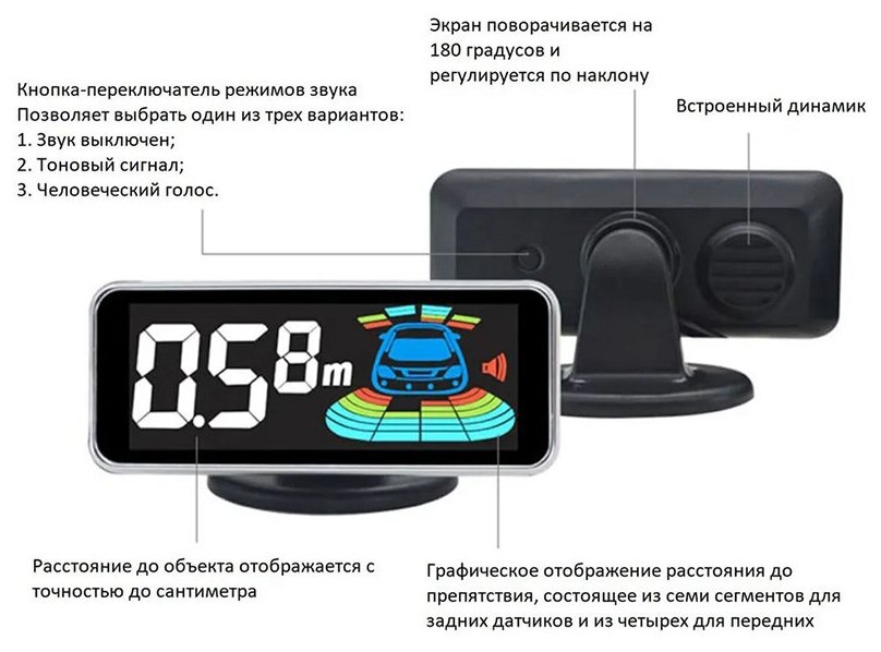Парктроник с цветным дисплеем Y-79360 8 датчиков красный цвет информация: