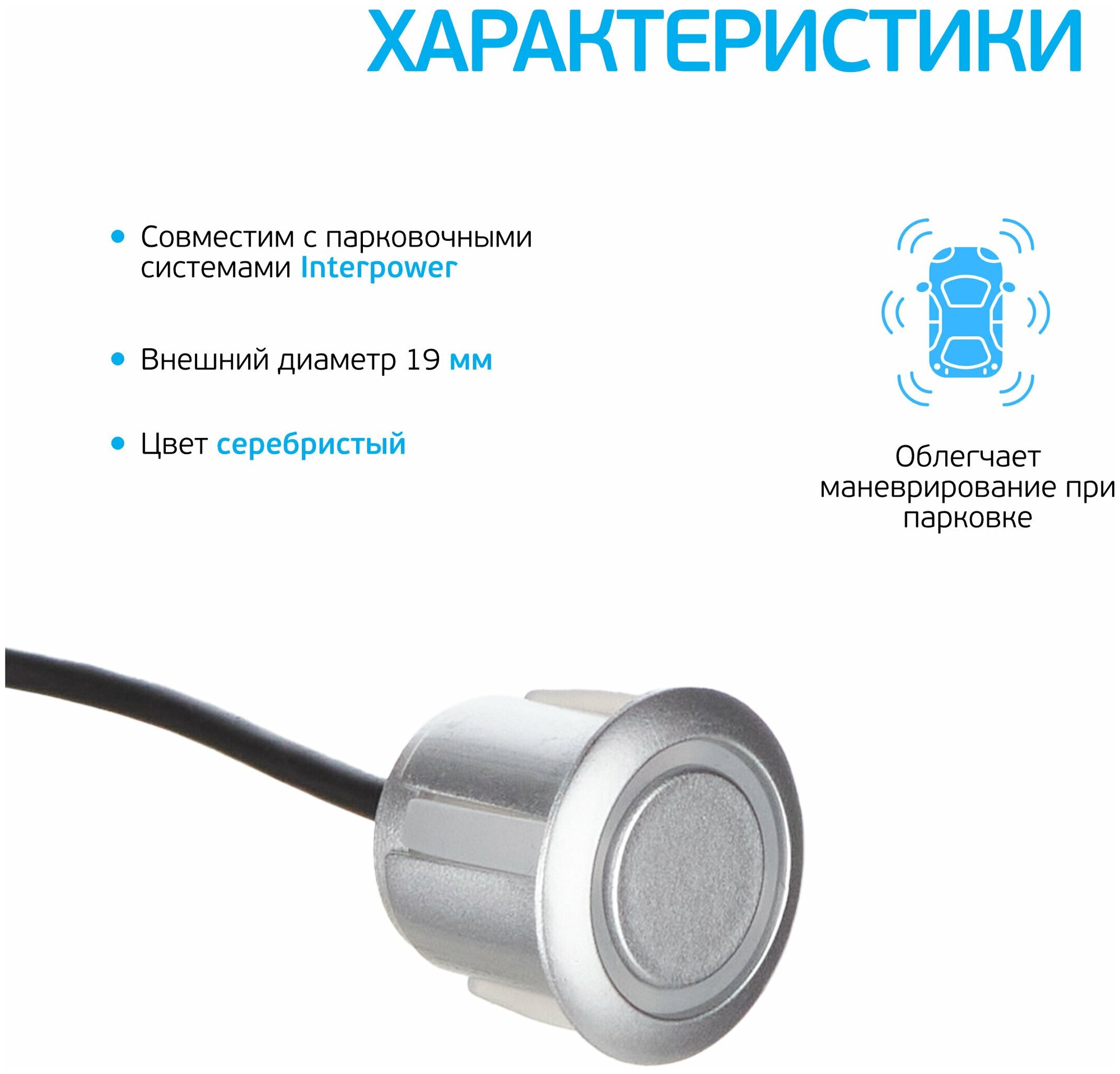 Датчик для парктроников Interpower 19мм (серебристый) информация: