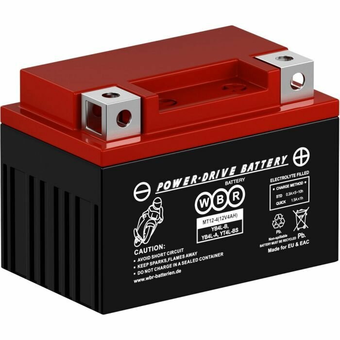Аккумулятор WBR MT 12-4 для мототехники (12В, 4Ач / 12V, 4Ah / стартерный ток 50А) YB4L-B, YT4L-BS, YTX4L-BS