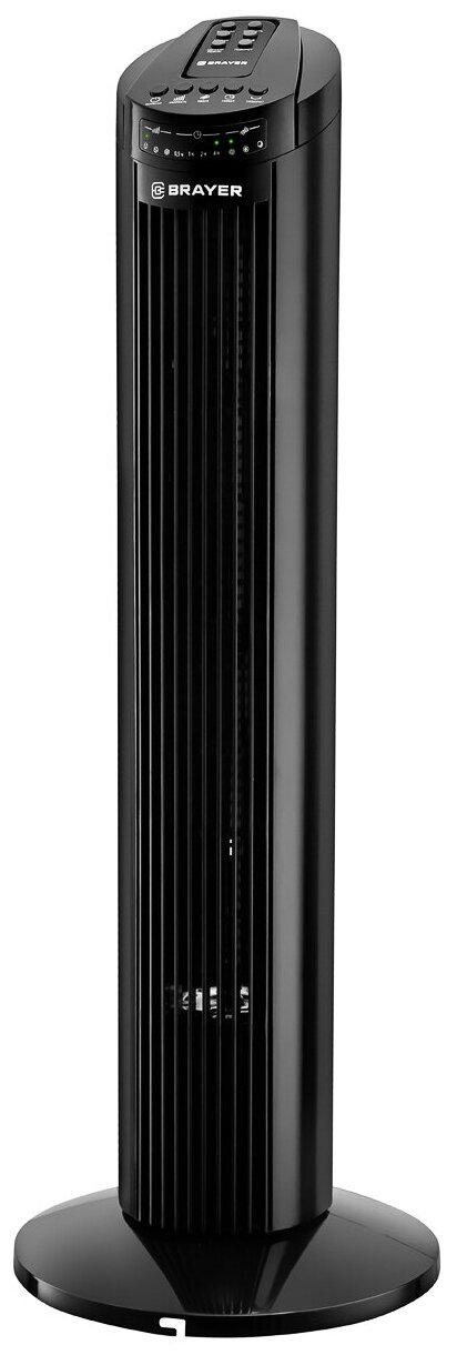 Напольный, колонный вентилятор BRAYER BR4982, 50Вт, 3 скорости, 2 режима, LED-дисплей, пульт ДУ, вращение, высота 107 см