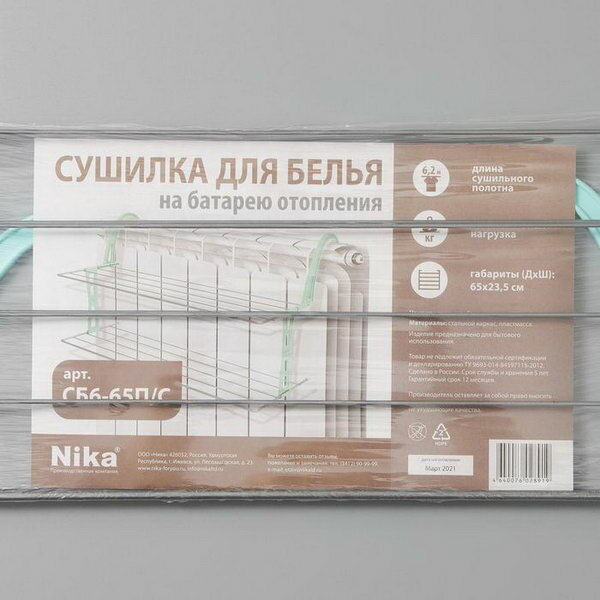 Сушилка для белья на батарею Ника 2-ярусная длина 6,2 м, максимальная нагрузка 5 кг 786 ₽
