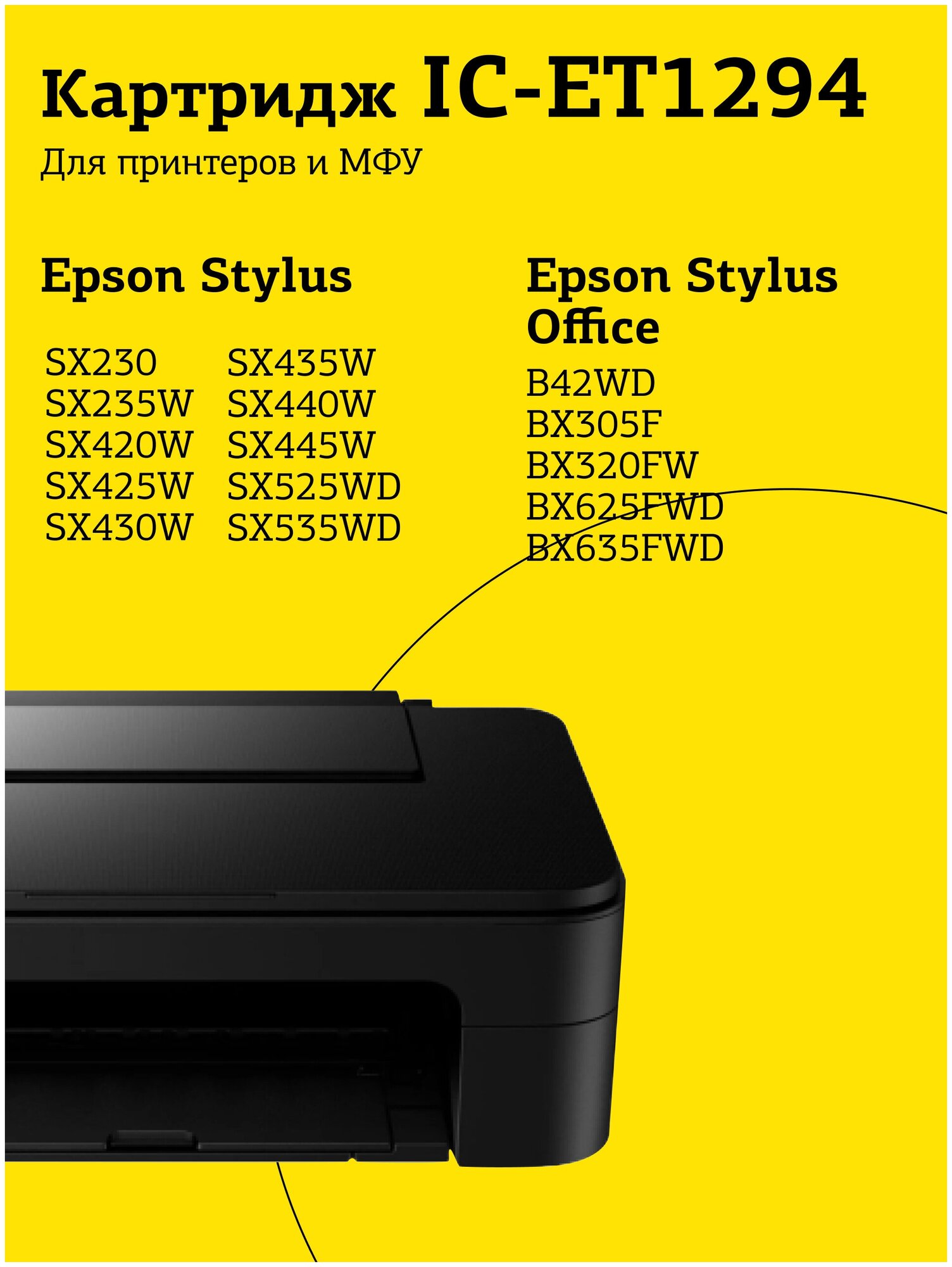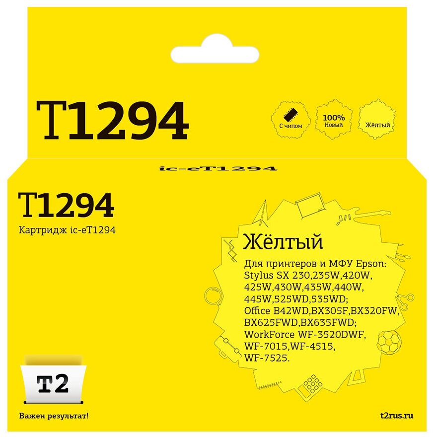 Отзывы на T2 C13T12944010 Картридж IC-ET1294 для EPSON Stylus SX420W SX425W SX525WD Office B42WD BX305F BX320FW BX625FWD желтый с чипом