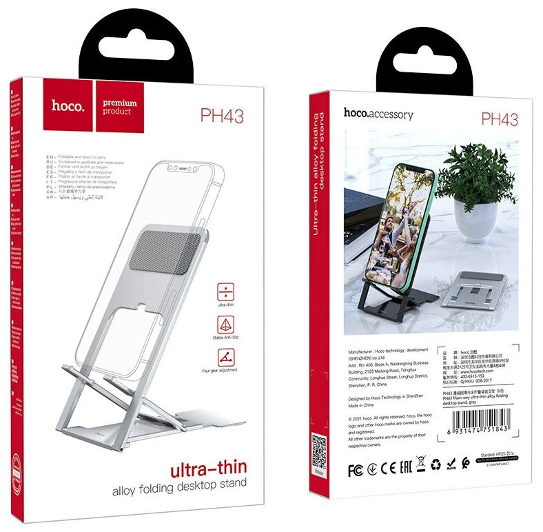 10 цен на Держатель настольный HOCO, PH43, Main-way, для телефона, пластик, силикон, алюминий, цвет: серебряный