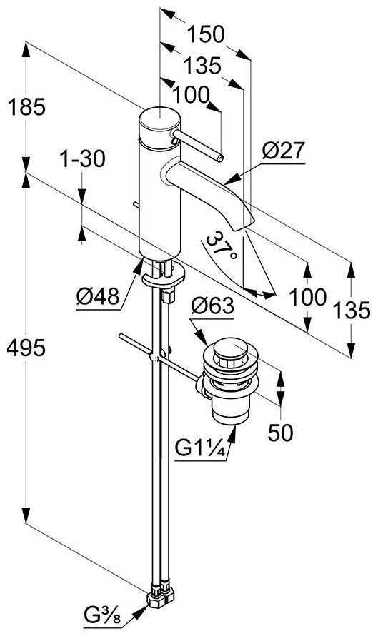 | Длина излива | 135 мм |