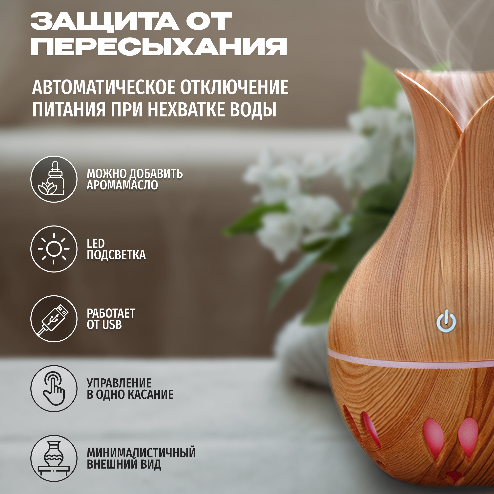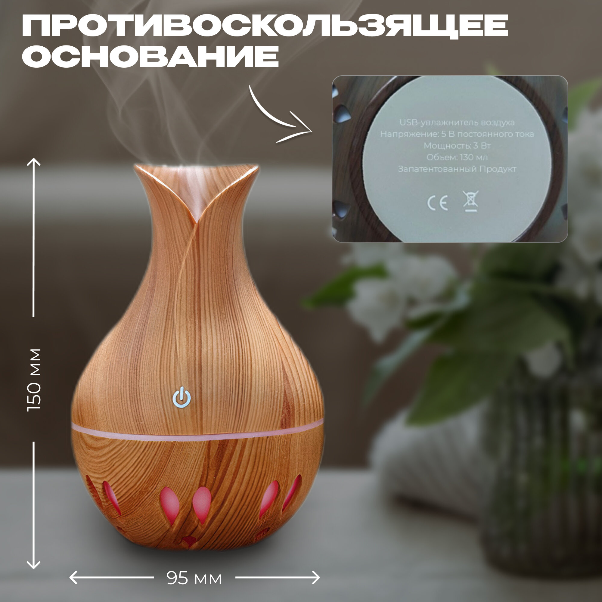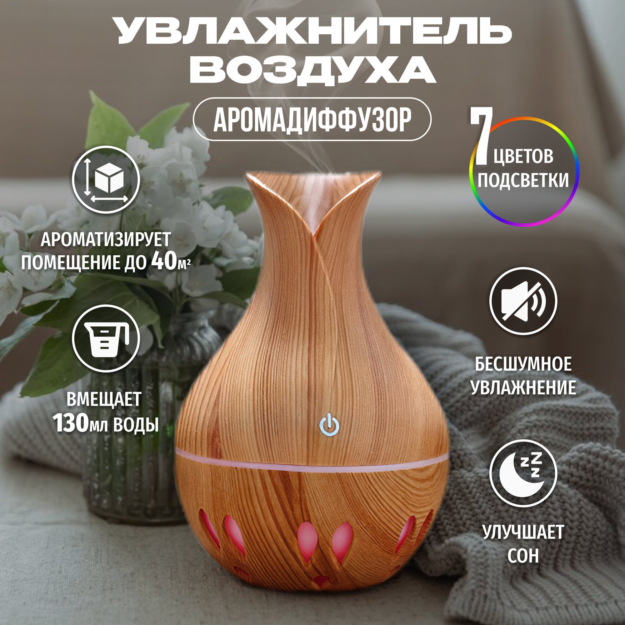 Увлажнитель воздуха для дома с подсветкой, ваза