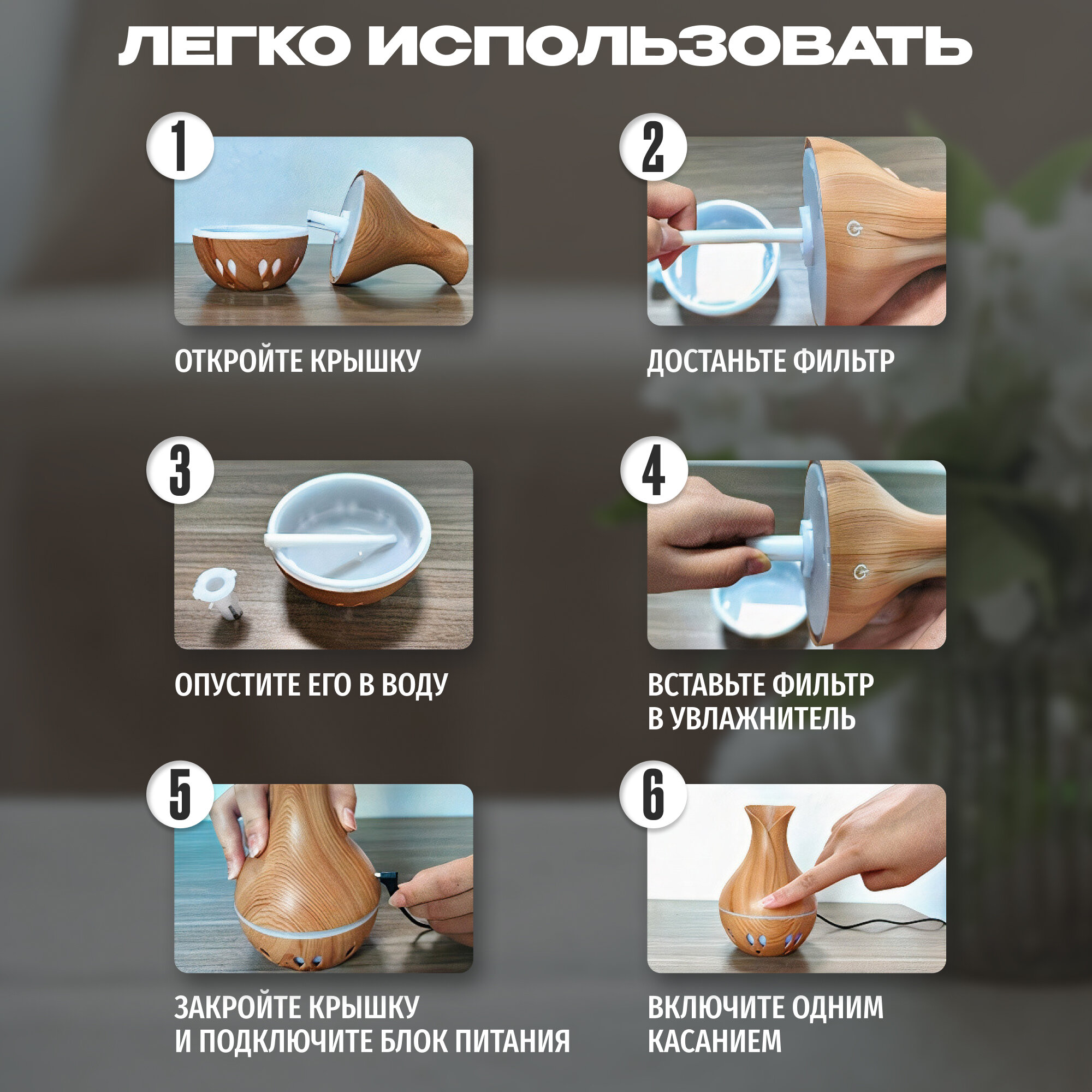 Увлажнитель воздуха для дома с подсветкой, ваза