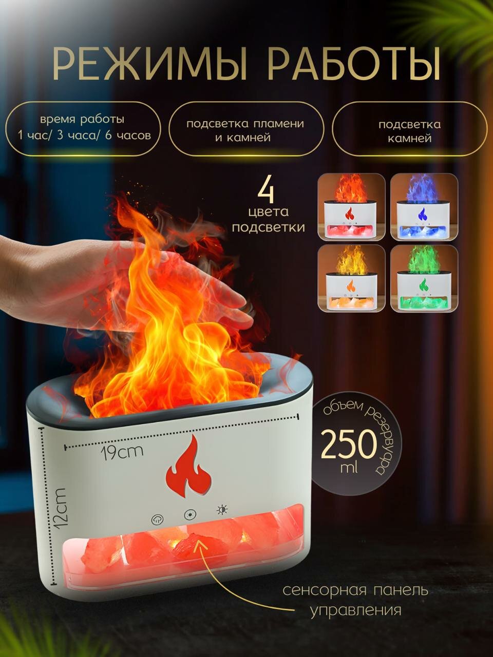 Ультразвуковой увлажнитель аромадиффузор с гималайской солью с подсветкой и эффектом пламени белый информация: