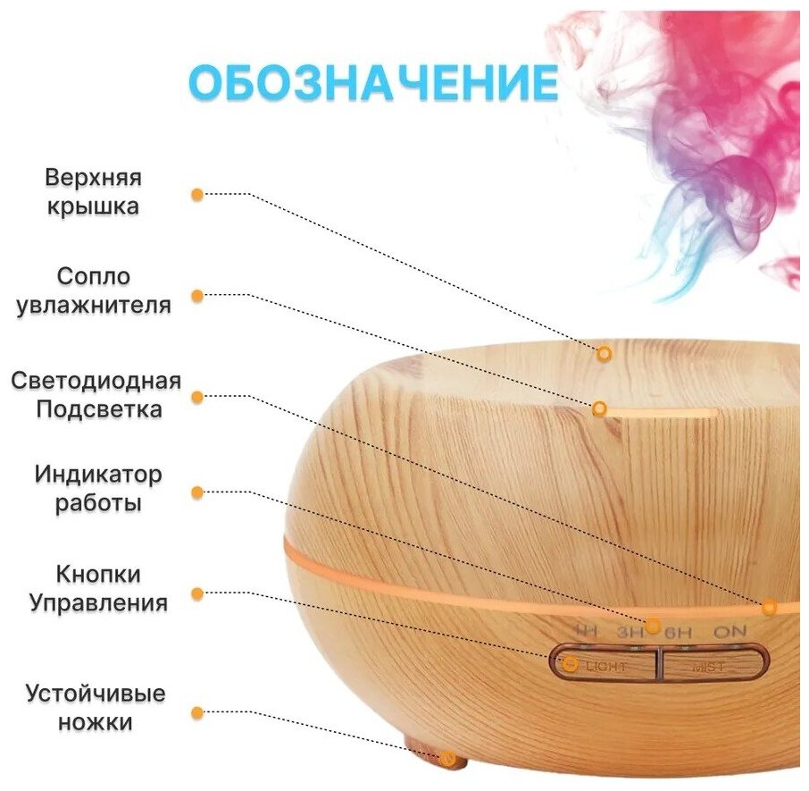 Ультразвуковой увлажнитель-аромадиффузор 300 мл (Светлое дерево) информация: