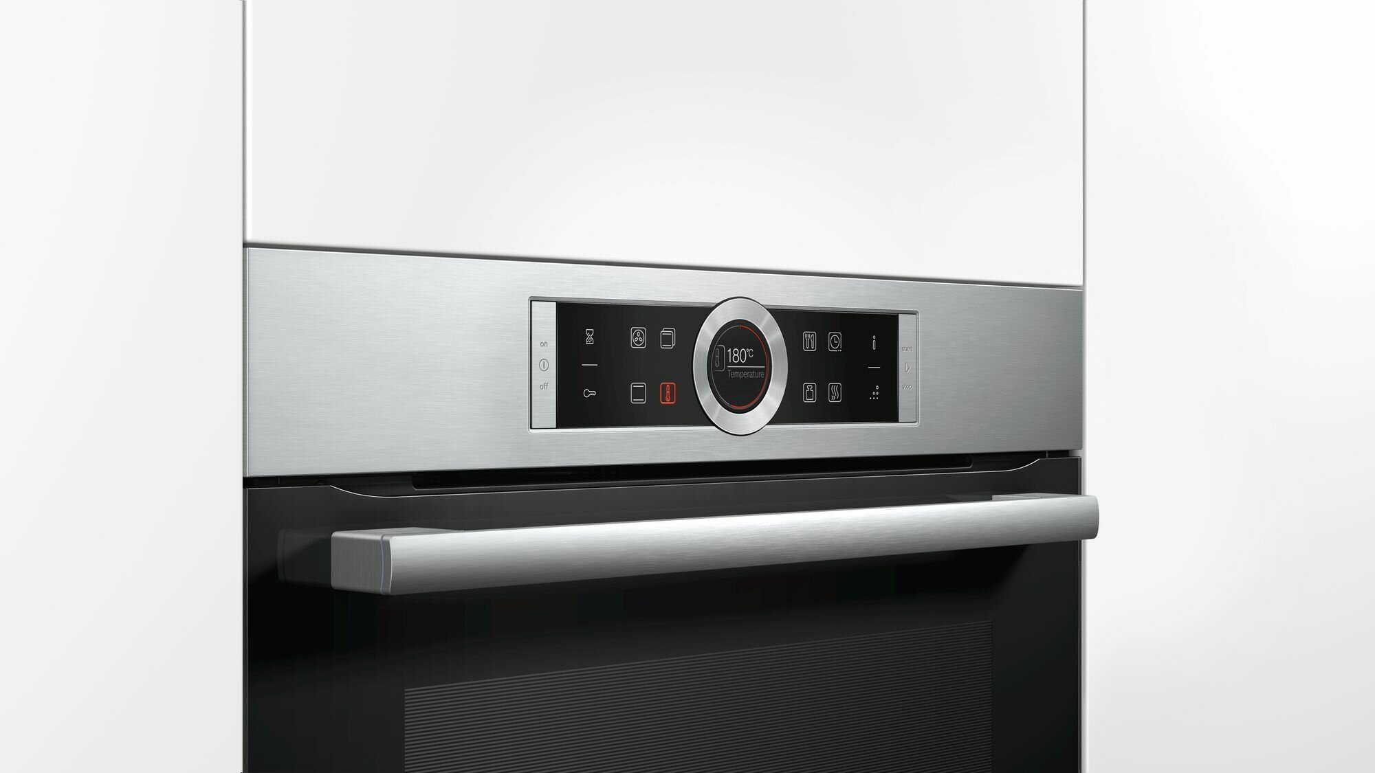 10 цен на Встраиваемая газовая духовка Bosch 59.5x59.5x54.8 см, 71л, дисплей, 13 режимов, EcoClean, 3 стекла, сталь