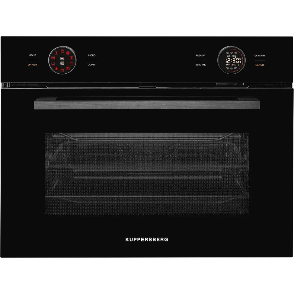 Встраиваемый духовой шкаф/ с СВЧ, 45 см, 50л, 12 режимов, гидролизная очистка, черный информация: