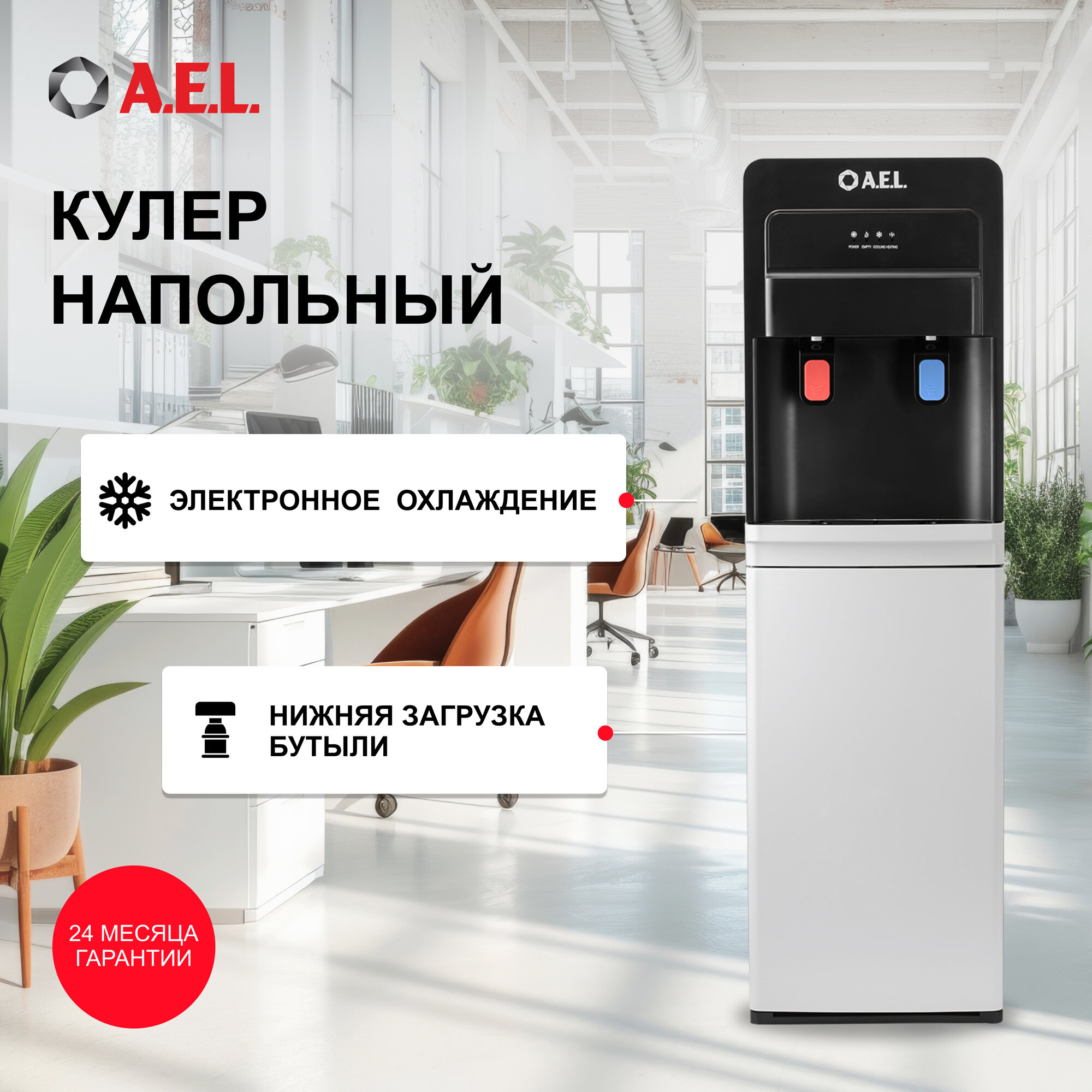 Кулер для воды напольный с нижней загрузкой бутыли AEL 805a LD с нагревом и электронным охлаждением информация: