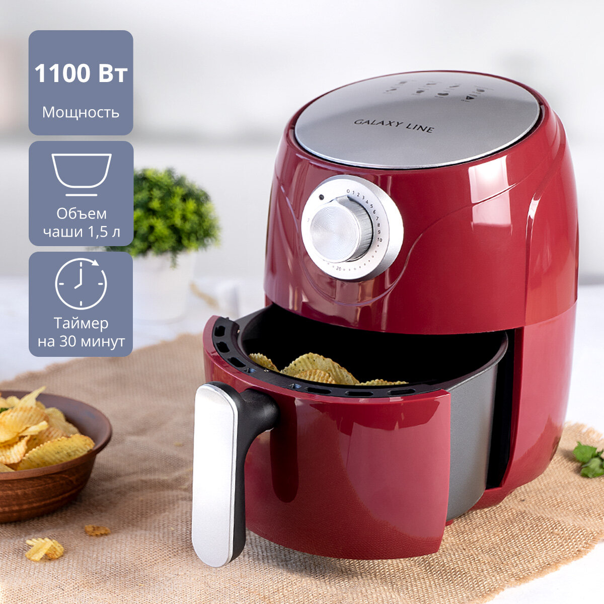 Аэрогриль Galaxy LINE GL 2522 / чаша 1,5 литра / мощность 1100 Вт / механическое управление / бордо 4 790 ₽
