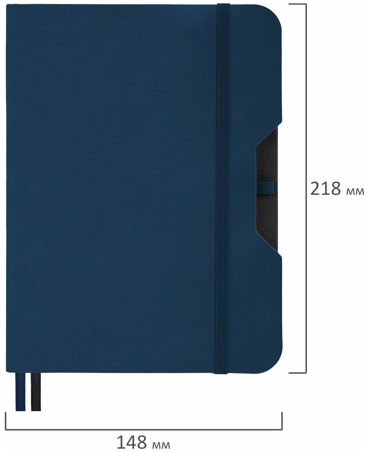 Блокнот А5 (148х218 мм), BRAUBERG "NOTE", под кожу софт-тач, с резинкой, 80 л., клетка, синий, 113438 информация:
