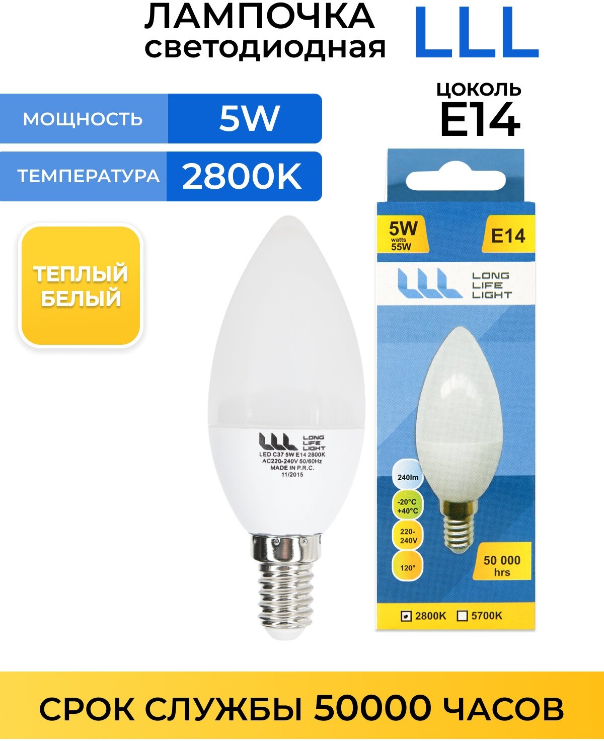 | Тип цоколя | E14 |