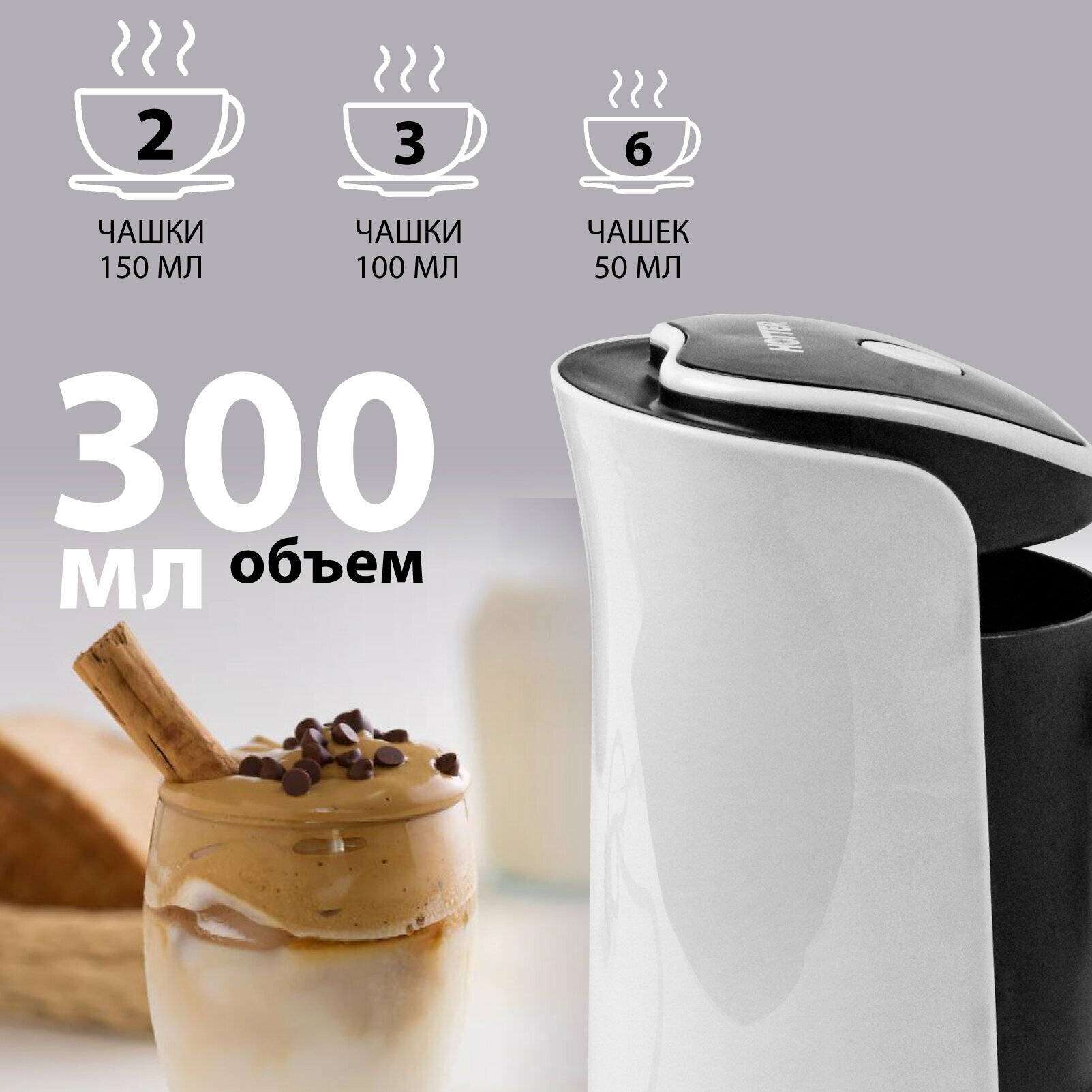 Кофеварка электрическая HOTTER HX-1100W , автоотключение, 300мл, 600Вт, чёрная с белым 2 450 ₽