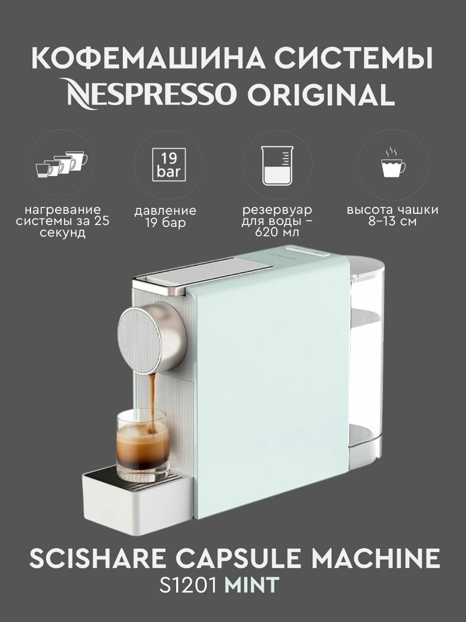 Кофемашина Xiaomi Scishare Capsule Coffee Machine Mini Mint Green (S1201) информация: