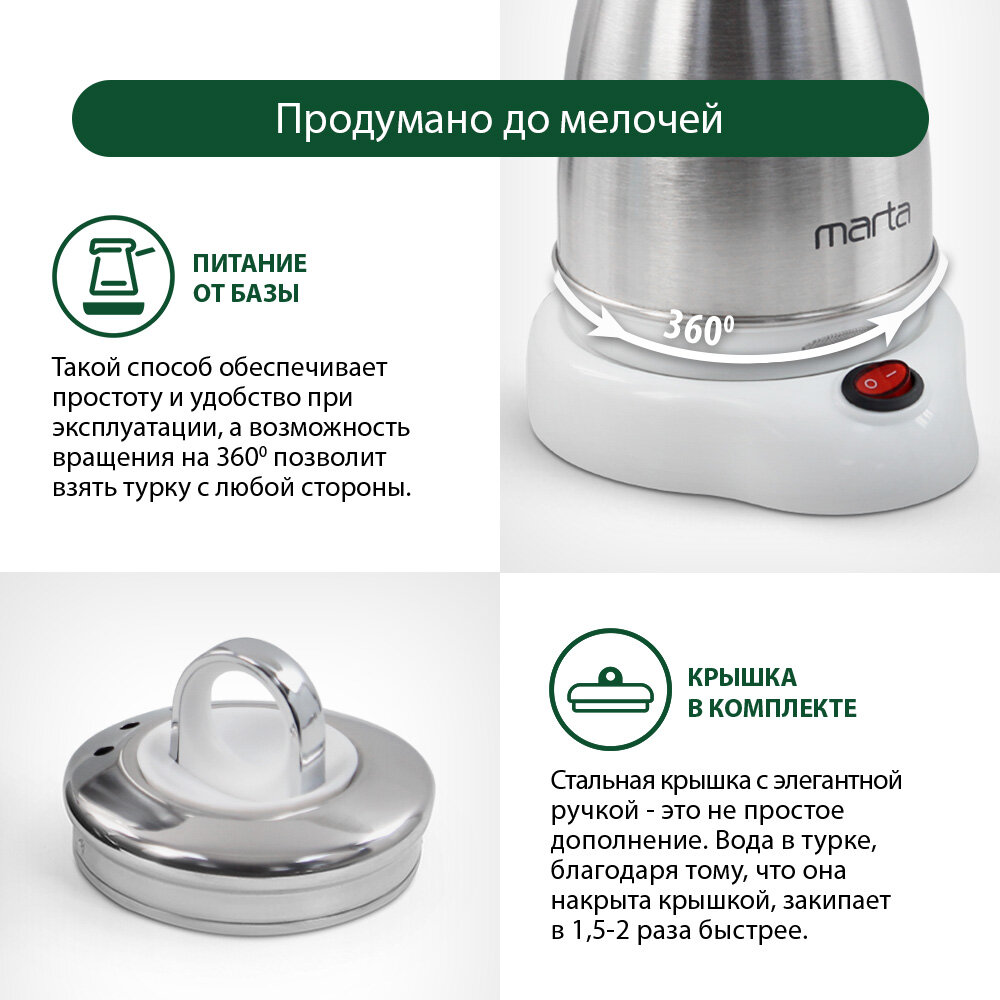 Мы выбрали 10 лучших цен на Электрическая турка MARTA МТ-2142 белый жемчуг. Перед тем как купить Электрическая турка MARTA МТ-2142 белый жемчуг посмотрите найденные предложения из Яндекс Маркета и других сайтов на основе XML фидов.