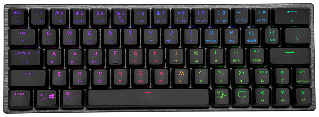 | Дополнительная информация | Низкопрофильный механический переключатель TTC (красный/синий/коричневый);Частота опроса клавиатуры: 1000 Гц (проводной режим), 125 Гц (режим Bluetooth); Микроконтроллер клавиатуры: 32-битный процессор ARM Cortex M0; Встроенная память клавиатуры: 512 КБ; Поддержка программного обеспечения: Cooler Master MasterPlus+; Батарея: 4000 мАч (2000 мАч × 2); 32-битный процессор ARM Cortex M0; плетеный и съемный кабель; с открытыми ножками: 293 x 103 x 43,03 мм |