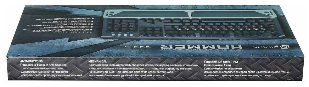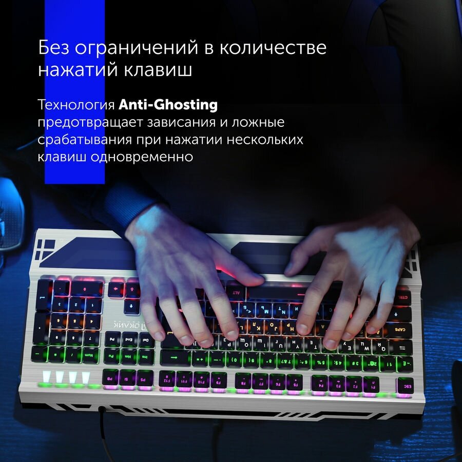Клавиатура Oklick 980G HUMMER, USB, c подставкой для запястий, серебристый + черный [499580] информация: