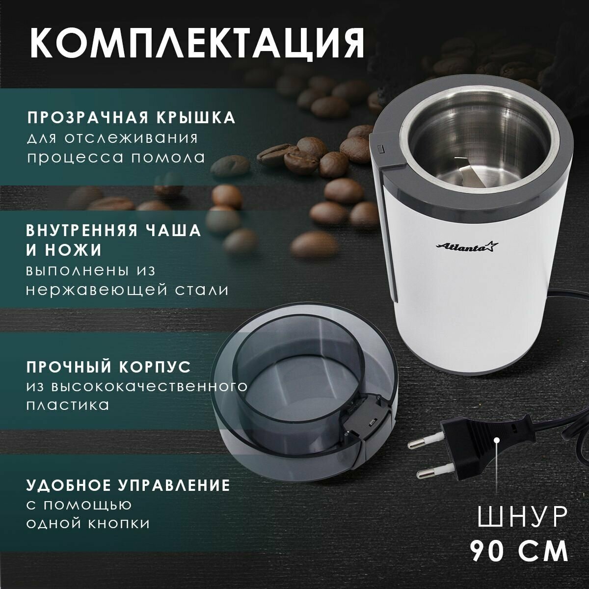 Кофемолка электрическая Atlanta ATH-3401 (white) информация: