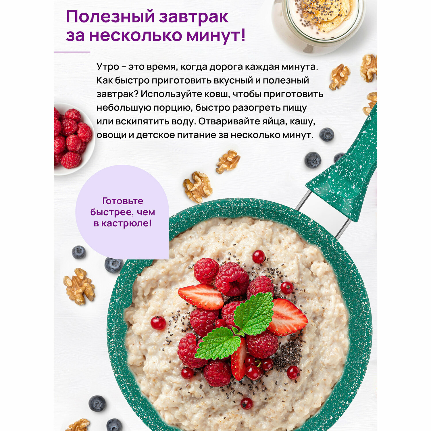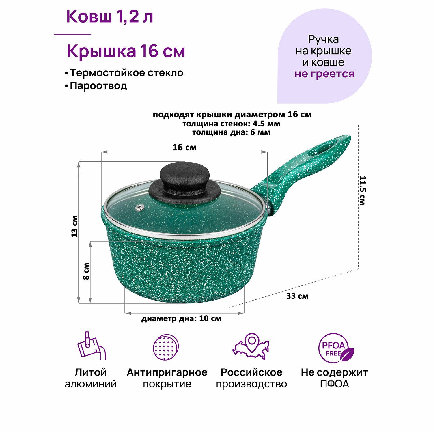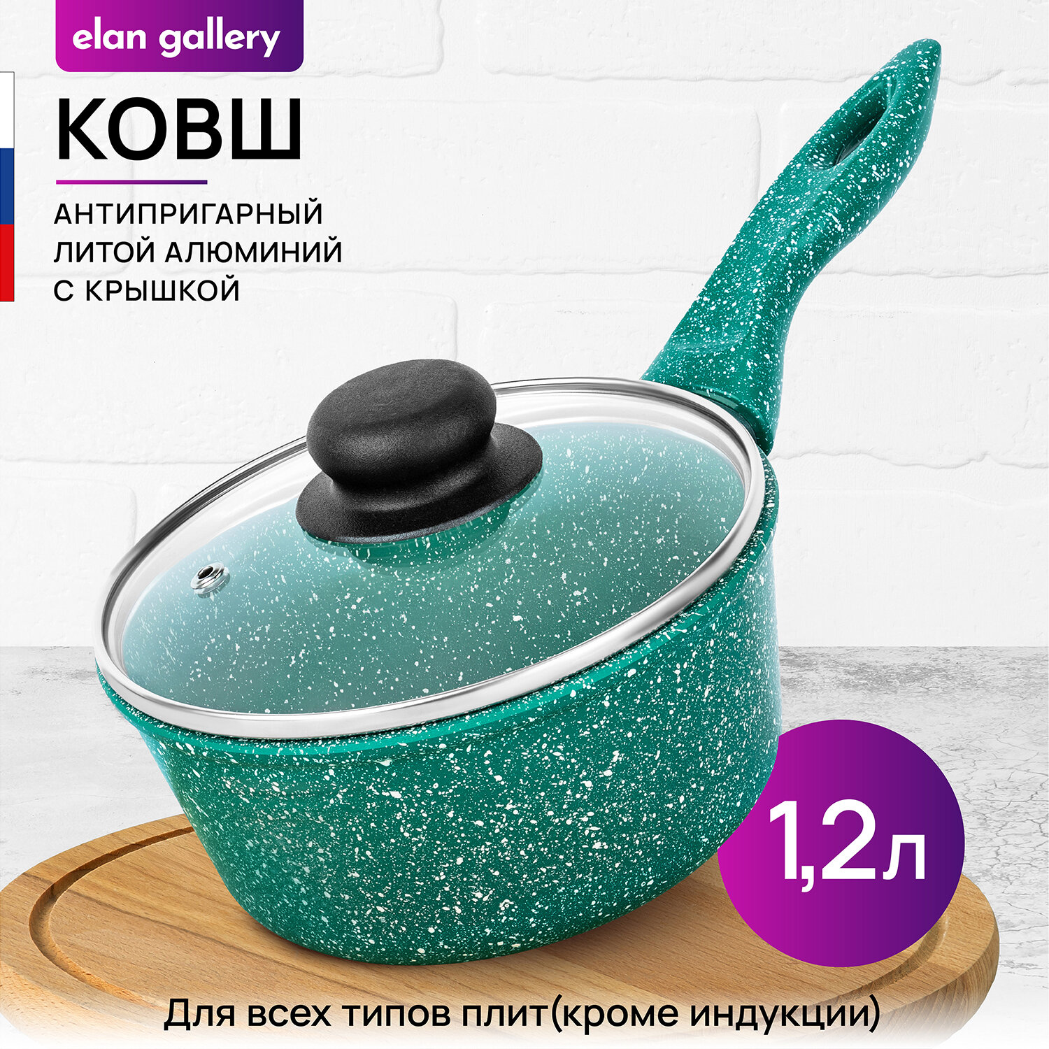 Ковш 1,2 л Elan Gallery гармония вкуса Изумруд с крышкой D16, толстостенный из литого алюминия с двухслойным антипригарным покрытием с несъемной ручкой Идеальный подарок на Новый год Рождество День Рождения и 8 марта