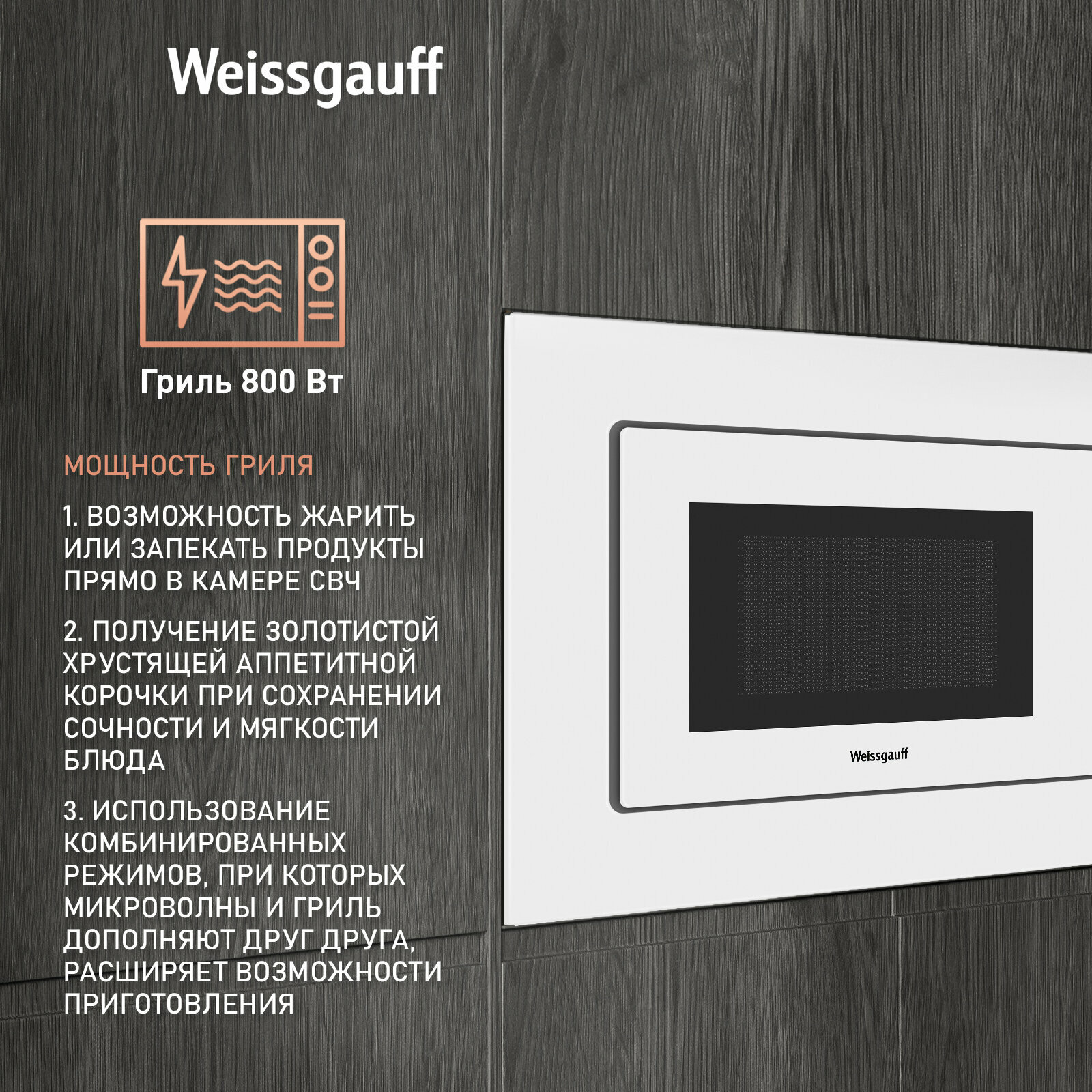 Встраиваемая микроволновая печь Weissgauff HMT-220 WG Grill информация: