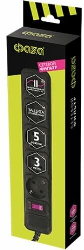 Сетевой фильтр ФАZА FOP-05GS-300-bk черный (5 роз., 3 метра)