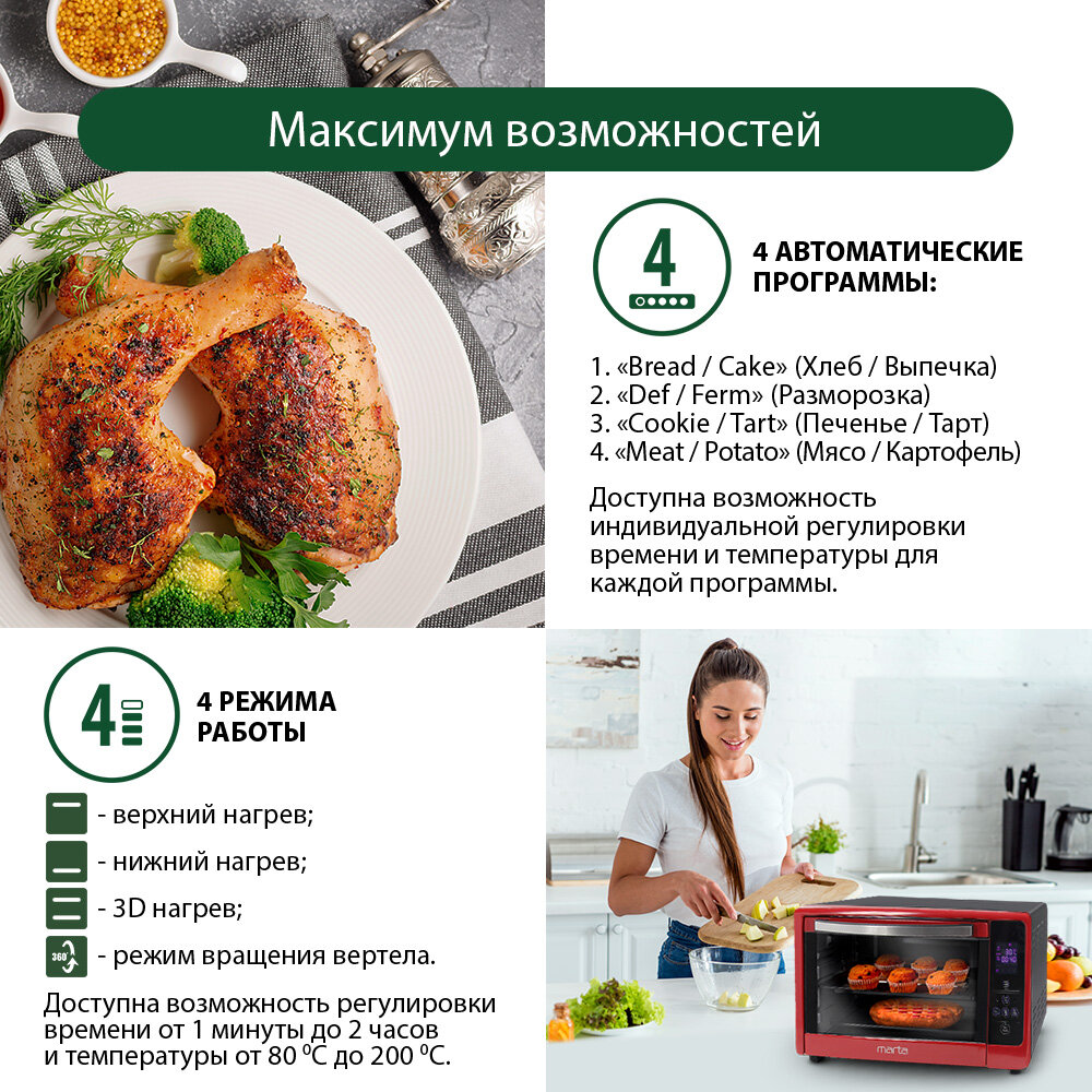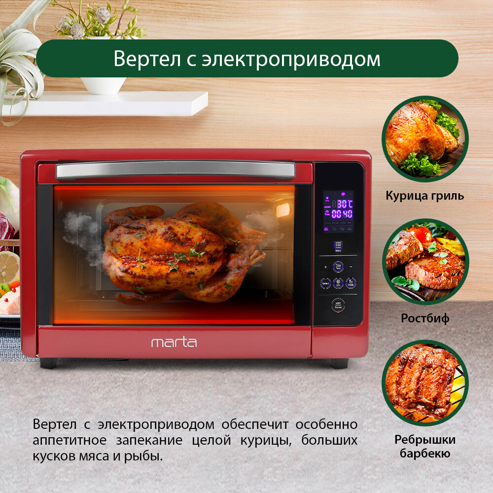 Мини-печь MARTA MT-4269 бордовый гранат информация: