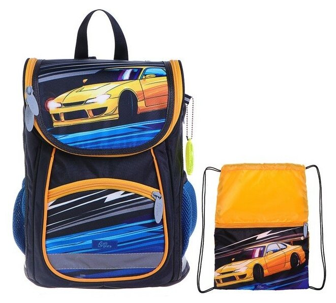 Ранец Стандарт, Сalligrata, 36 х 26 х 16 см, с мешком для обуви, «Тачка»