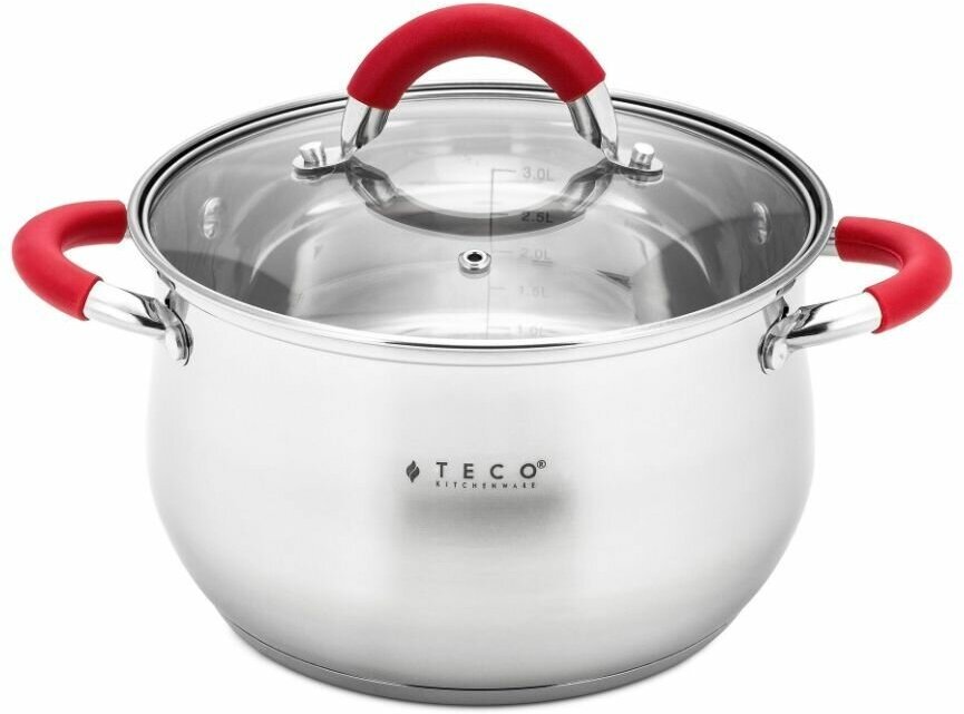 Ковш из нержавеющей стали c крышкой Teco TC-S2100-03R, красный, 16 cм/2,1л 1 550 ₽